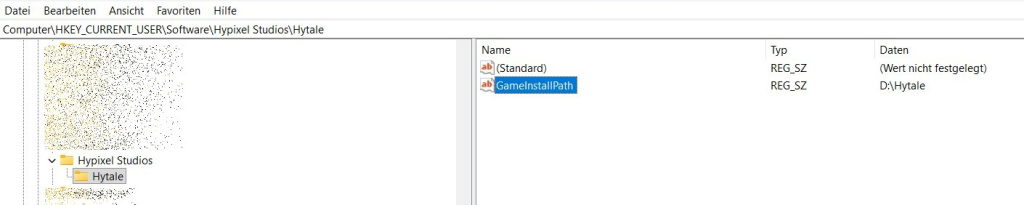 Computer\HKEY_LOCAL_MACHINE\SOFTWARE\Hypixel Studios\Hytale – > Path to your install location like D:\Hypixel Studios